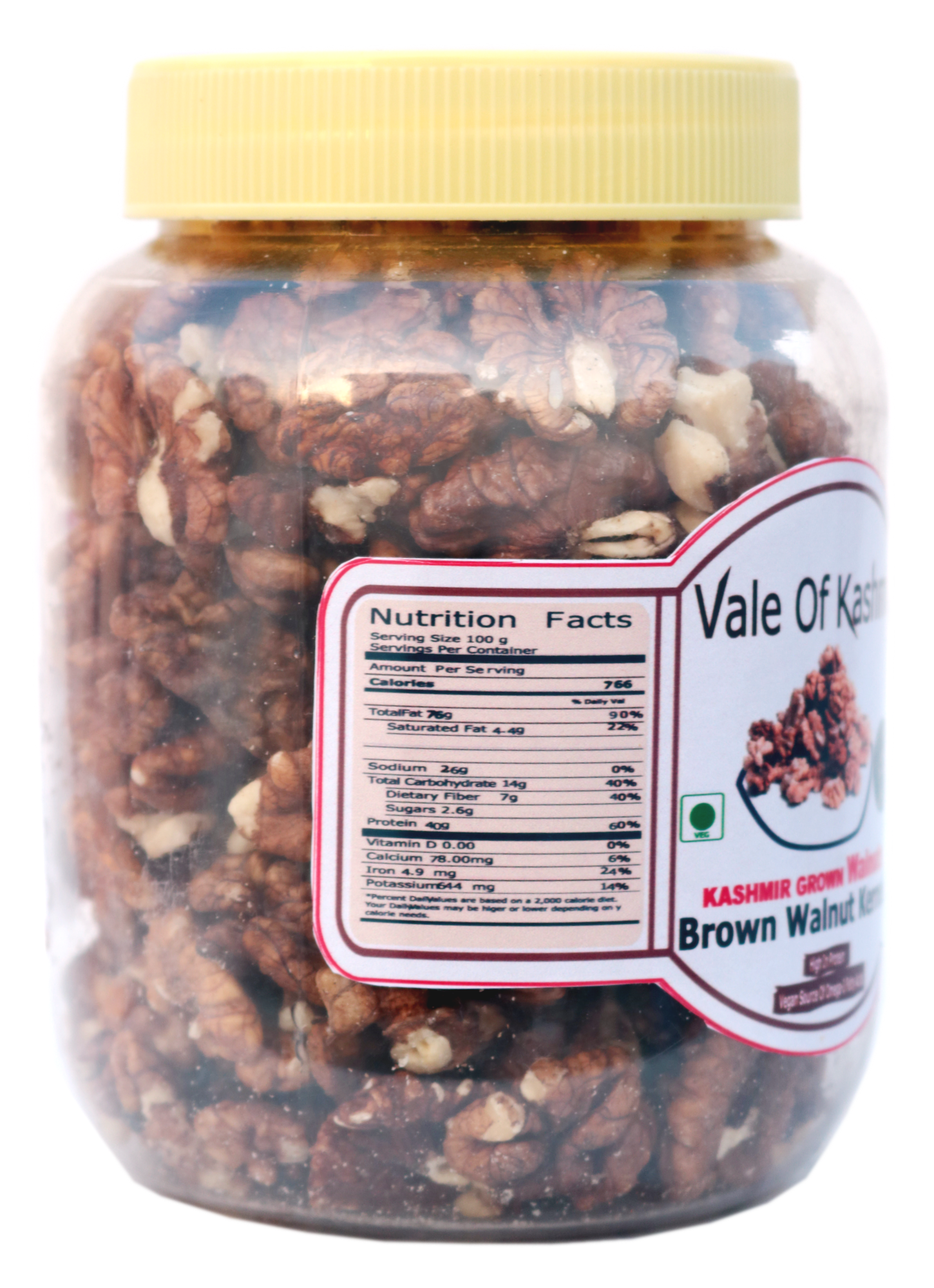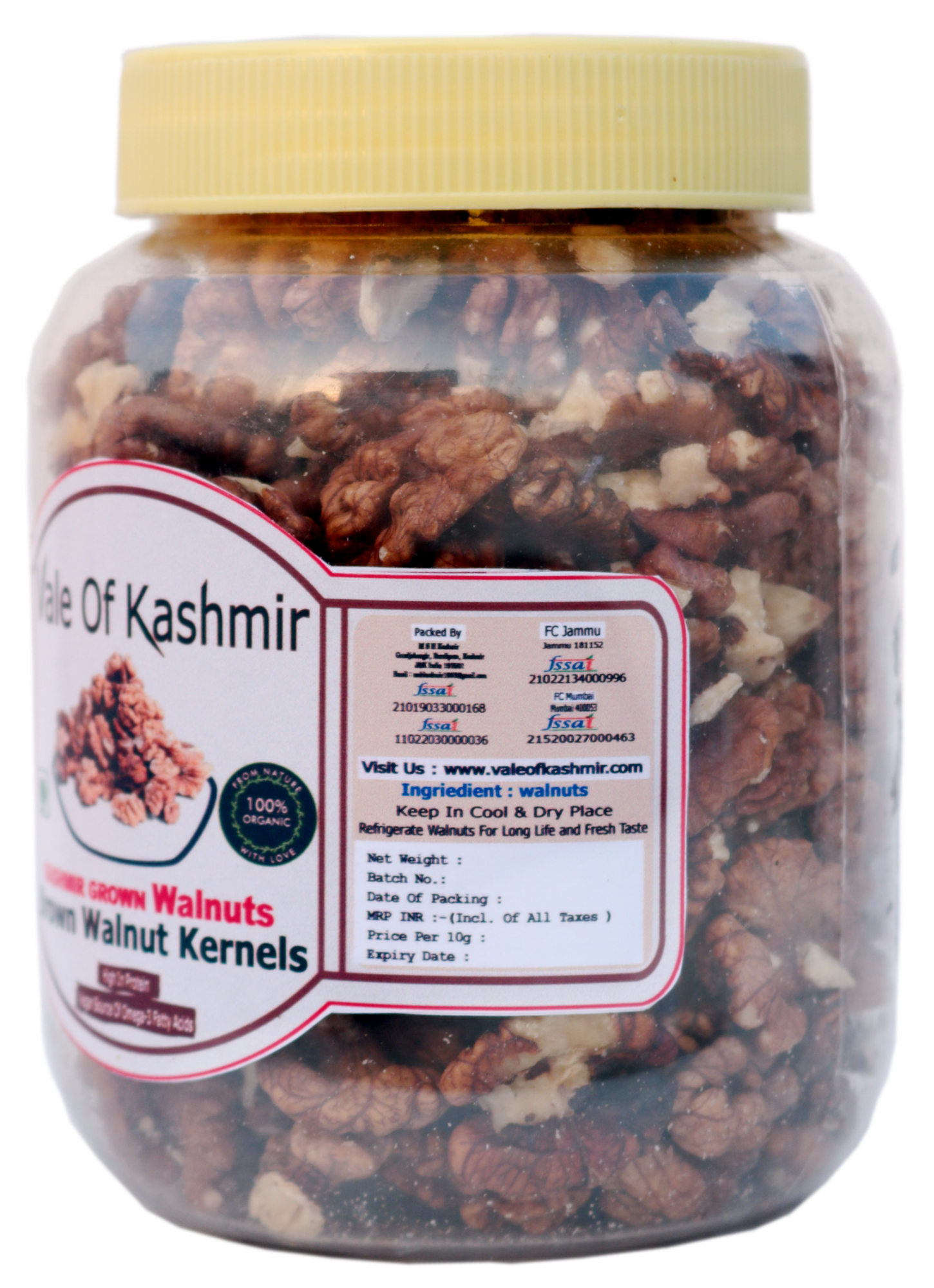 Vale Of Kashmir Brown Walnut Kernels 500 Grams In Food Grade Jar