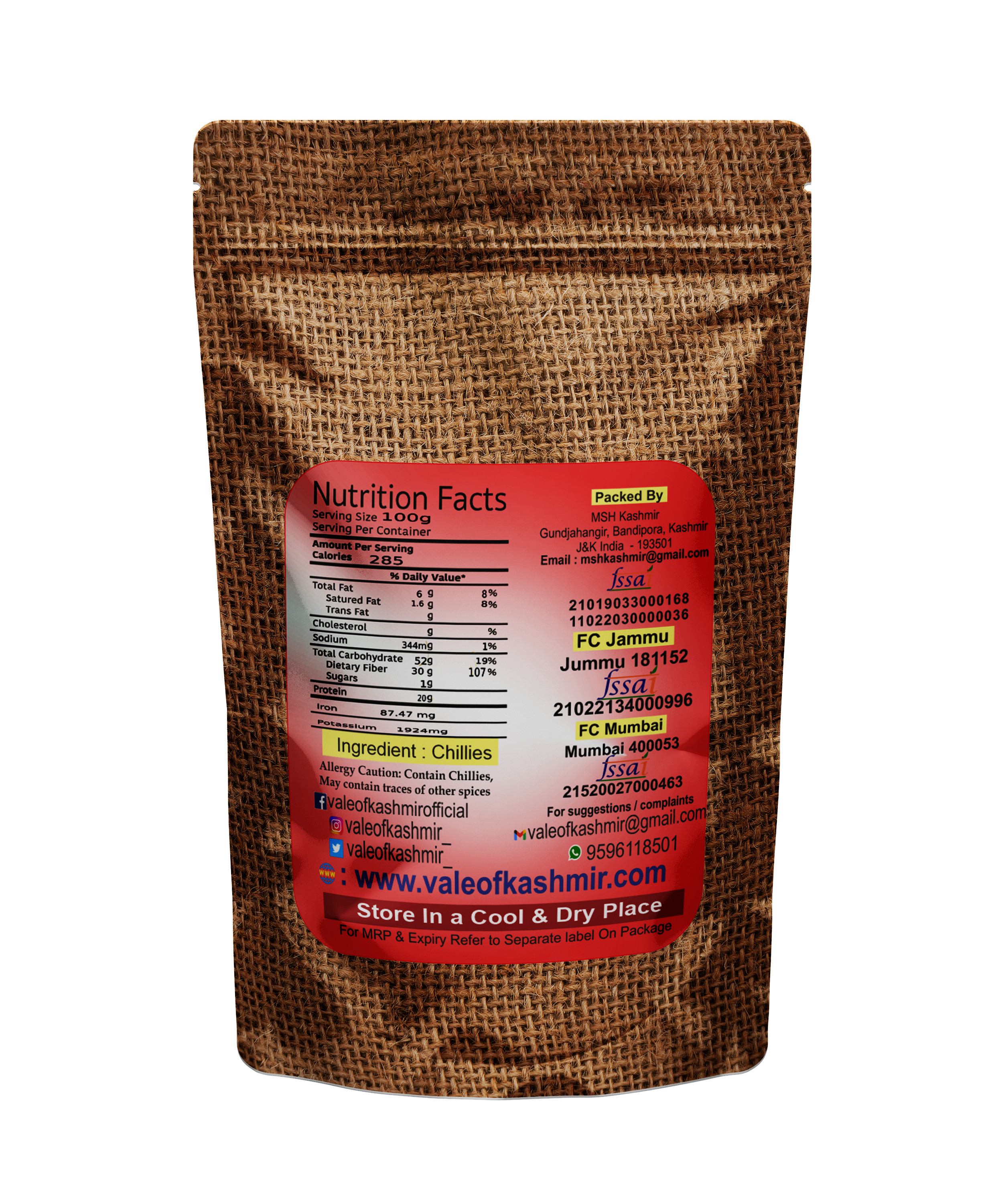 Vale Of Kashmiri Kashmiri Chilli Whole From Kashmir | Natural Organic Hand Processed