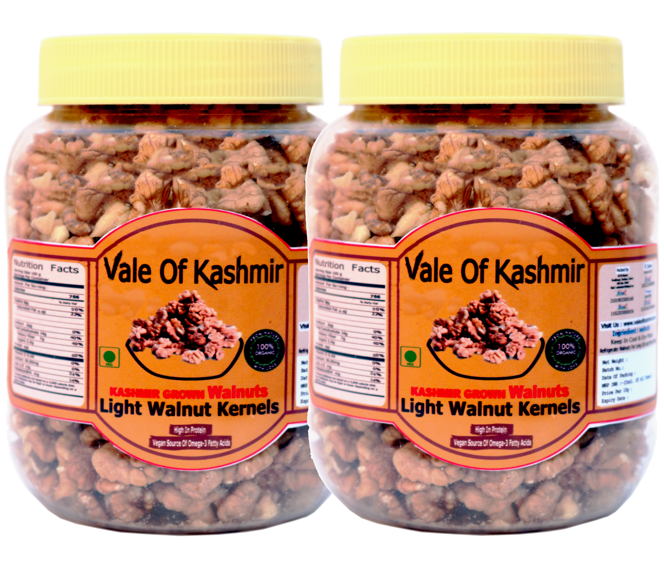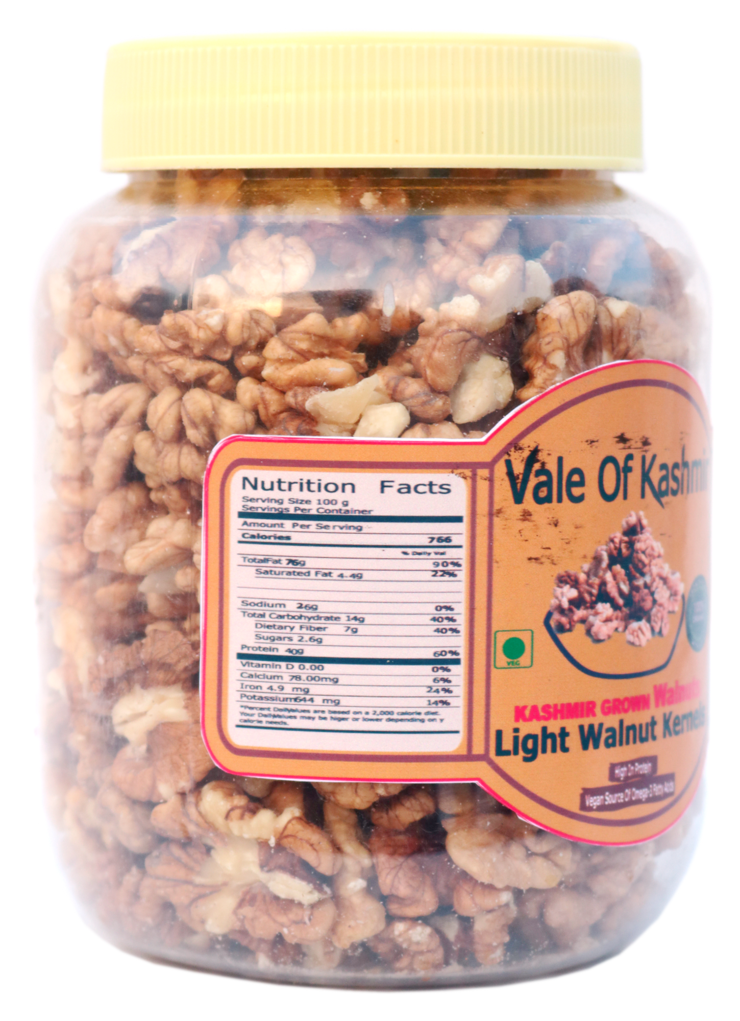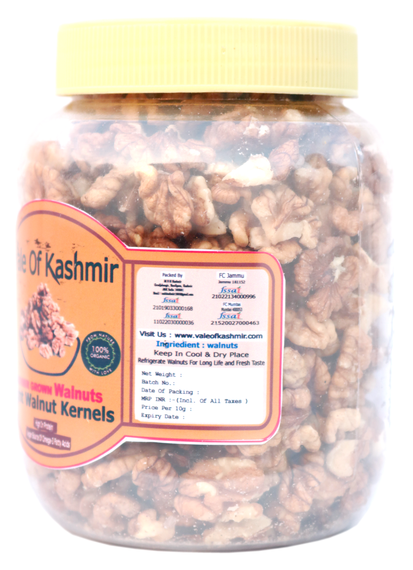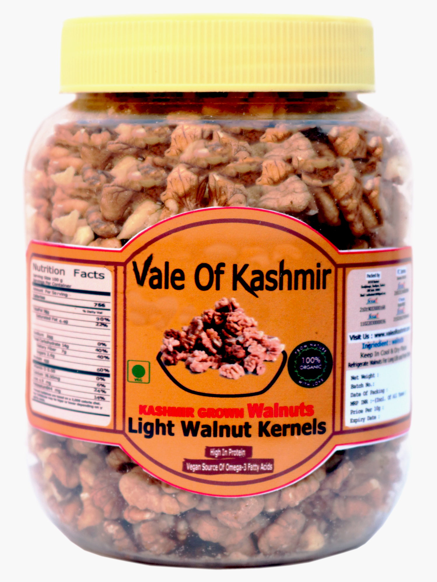 Vale Of Kashmir Kashmiri Walnut Kernels Light Half 1 kg | Kashmiri Akhrot Giri in Food Grade Jar